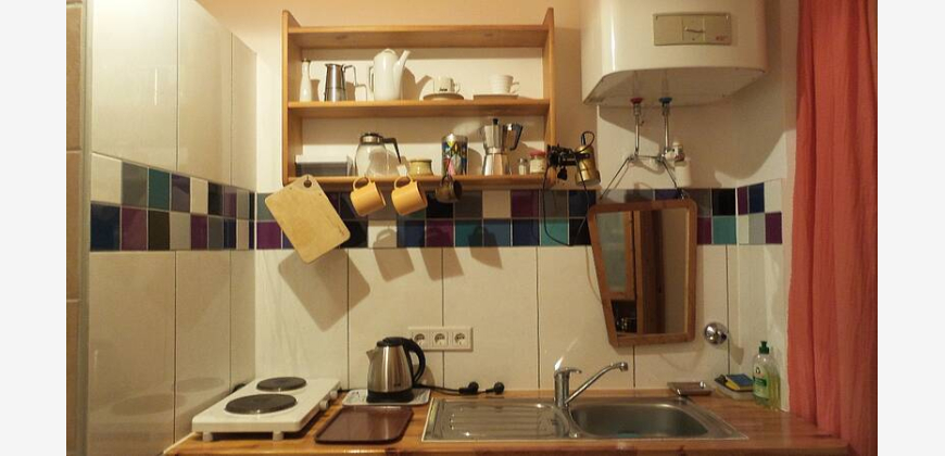 die wohnung besteht aus einem wohn- schlafraum und einem küchenraum mit integriertem duschbereich. die toilette ist am gang zur alleinigen benutzung.