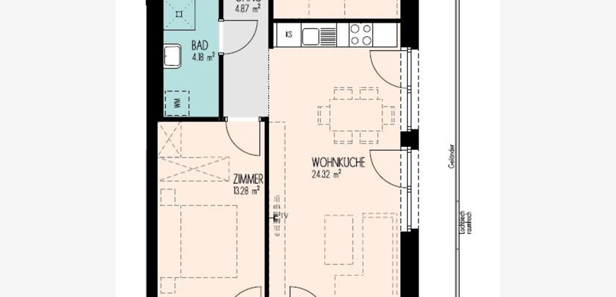 Im 14. Stockwerk erwartet Sie diese lichtdurchflutete Wohnung mit ca. 65 m² Wohnfläche und einem beeindruckenden 25 m² Balkon. Hier wohnen Sie mit unvergleichlicher Aussicht, moderner Ausstattung und einem Grundriss, der sich sowohl für Paare, Familien als auch für eine WG perfekt eignet. Das Herzstück der Wohnung ist die offene Wohnküche