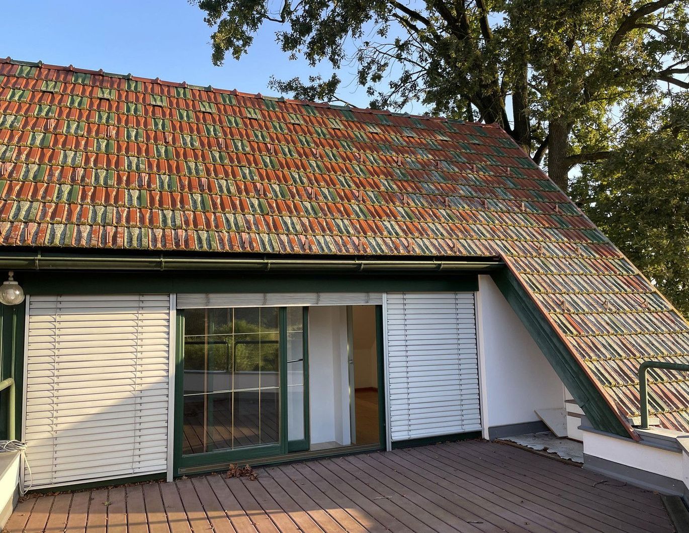 Dachterrasse, Duschbad, Einbauküche, Parkett Bemerkungen: Gepflegt. Einbauküche und freier Kühlschrank, Bad mit Wanne, separates WC, Dachterrasse südseitig.