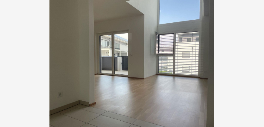 und der tolle Blick vom 4.OG auf den Essbereich. Die großen Fenster sorgen für viel Tageslicht und eine helle Atmosphäre. Im 3. Obergeschoss gibt es ca. 65 m², und im 4. Obergeschoss ca. 61 m², jeweils mit großen Schlafzimmern. Die Loggia und die nicht überdachte Fläche von etwa 9,6 m² laden zum Entspannen im Freien ein. Außerdem ist die Wohnung nach Osten ausgerichtet, sodass man morgens die Sonne genießen kann und im Sommer die kühlere Seite hat.