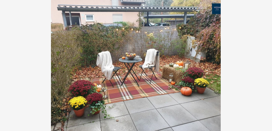 Die Maisonette-Wohnung verfügt über rund 72,9 m² Wohnfläche auf zwei Ebenen. Im Erdgeschoss befindet sich der Wohn-, Ess- und Kochbereich mit Ausgang auf die Terrasse und in den Gartenanteil. Weiters gibt es einen Vorraum, ein separates WC sowie einen Abstellraum. Im Obergeschoss stehen zwei Schlafzimmer, ein Badezimmer mit Badewanne sowie ein Balkon zur Verfügung. Durch die gelungene