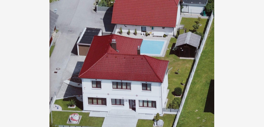 Grundfläche ca. 1000m² Massive Bauweise (BJ1959), saniert (Fenster, Wärmedämmung, Dach) Erdgeschoß (140m²): Wohnzimmer, 2 Zimmer, Küche, Bad (barrierefreie Dusche), WC, Abstellraum Obergeschoß (120m² + 20m² Dachterrasse): Wohnzimmer (mit Kaminofen), 3 Zimmer, Küche, Bad inkl. WC Erd- und Obergeschoß können in 2 Wohneinheiten aufgeteilt werden (2 separate Eingänge, 2 separate Stromzähler). Ebenso könnte das Erdgeschoß in einen Büro- oder Gewerbebereich umgewandelt werden