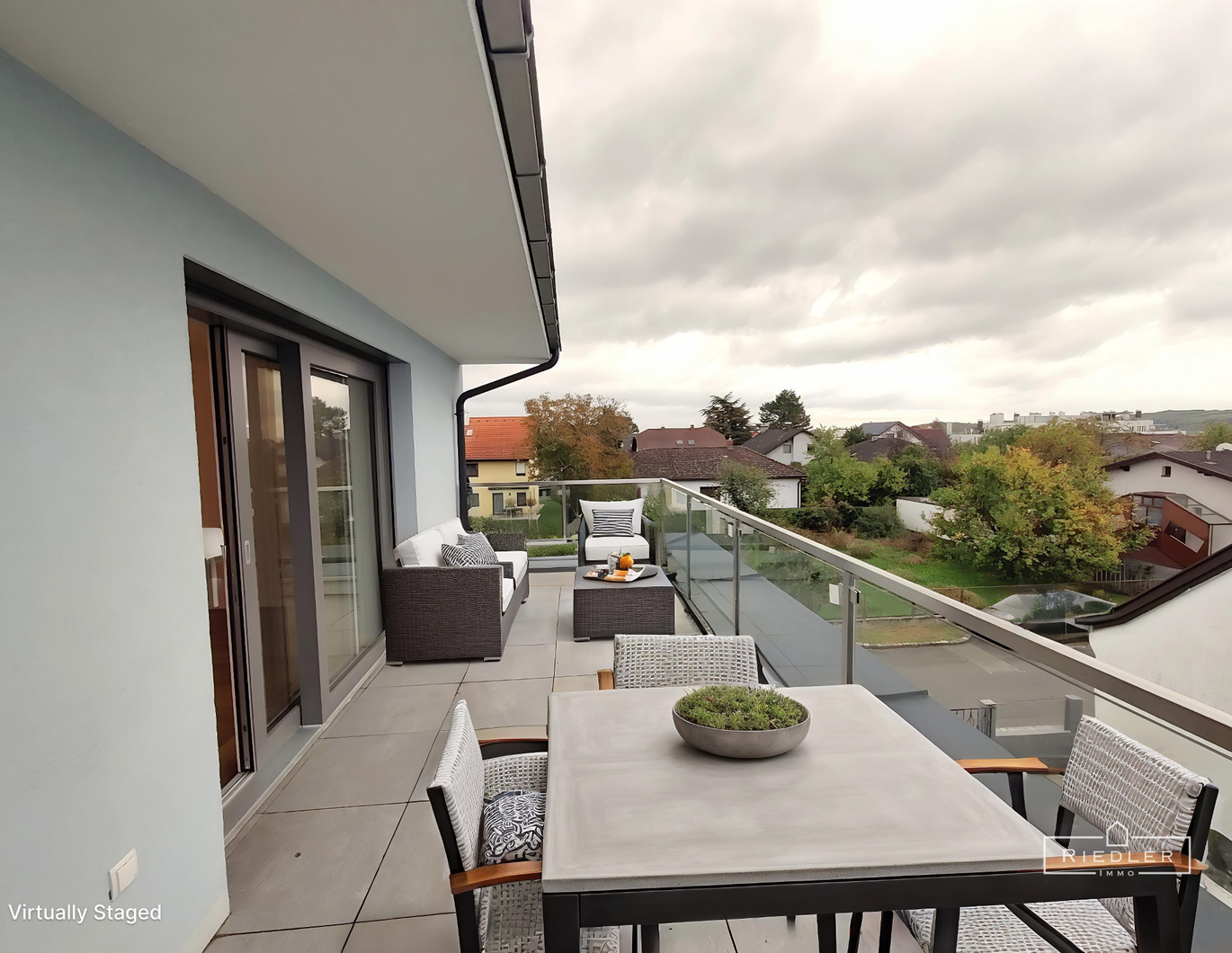 + 1 großes Schlafzimmer mit 15m2 Dachterrasse und 1 Bad mit Dusche und WC im Dachgeschoß