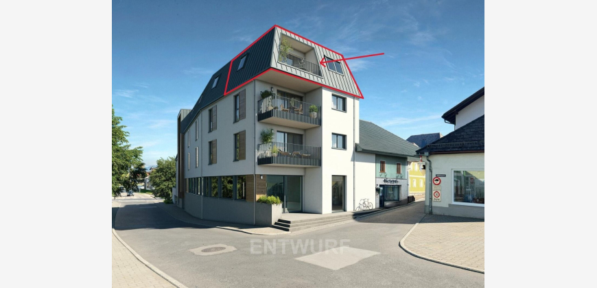 Willkommen in Ihrem neuen Zuhause in St. Georgen im Attergau! Diese bezaubernde Dachgeschoßwohnung in der 3. Etage bietet Ihnen nicht nur eine erstklassige Wohnlage, sondern auch modernen Wohnkomfort auf 51,5 m². Hier genießen Sie die Vorzüge eines Erstbezugs, der es Ihnen ermöglicht, Ihre persönlichen Wohnträume sofort zu verwirklichen. Mit zwei hellen und einladenden Zimmern ist diese Wohnung ideal für Paare, kleine Familien oder Singles. Der durchdachte Grundriss sorgt für eine optimale Nutzung der Wohnfläche und bietet Ihnen viel Raum zum Entspannen und Wohnen. Die hochwertige Ausstattung mit Fliesen und Parkett verleiht den Räumen eine elegante Note und sorgt für eine behagliche Atmosphäre. Ein besonderes Highlight dieser Immobilie ist die Loggia, die Ihnen einen herrlichen Blick in die Umgebung bietet und ideal ist, um die Abendsonne zu genießen. Der Nordwestbalkon lädt dazu ein, nach einem langen Tag zu entspannen und die frische Luft zu genießen. Die Wohnung ist mit einem modernen Badezimmer ausgestattet, das über ein Fenster und eine komfortable Dusche verfügt. Hier können Sie sich nach einem langen Tag erfrischen und entspannen. Zudem steht Ihnen ein Wasch- und Trockenraum zur Verfügung, der Ihnen das Leben erleichtert. Ein Personenaufzug sorgt für einen mühelosen Zugang zur Wohnung, während die Garage Ihnen einen sicheren Stellplatz für Ihr Fahrzeug bietet. Erleben Sie die Vorzüge des Lebens in St. Georgen im Attergau