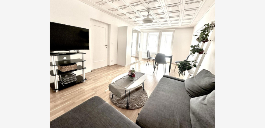 Die helle und geräumige 2 bis 2.5-Zimmer-Wohnung befindet sich im 3. Liftstock eines 1974 erbauten, gepflegten Haus in gutem Zustand. Beide Wohnräume sind vom Vorraum (8m2) zentral begehbar, die Wohnung ist also auch ideal für eine hochwertige Wohngemeinschaft geeignet. Das größere der Zimmer (22m2) bietet ein einzigartiges Wohngefühl und eine direkt angrenzende, südseitige Loggia/Wintergarten (5m2). Im hinteren Bereich finden Sie Platz für eine große Eck-Couch, oder auch einen weiteren Schlafbereich. Vom Vorzimmer aus gelangen Sie auch direkt in das zweite Zimmer (18m2) inklusive einem kleinen Schrankraum. Dieses Zimmer bietet Platz für ein geräumiges Bett sowie einen hellen Arbeitsplatz am großen Fenster. Die vom Vorraum offen zugängliche Küche (8m2) mit allen Küchengeräten (Spüle, Herd und Backrohr, Geschirrspüler, Kühl-/Gefrierkombigerät) bietet zwei Arbeitsbereiche für große Koch-Sessions, sowie mehr als ausreichend Stauraum. Das 2026 komplett sanierte WC und Badezimmer (Erstbezug) mit Badewanne, Walk-In-Dusche mit riesiger Regendusche und Waschtisch wurde erst heuer, 2026 mit hochwertigen Villeroy & Boch Sanität-Materialien neu gestaltet. Hochwertige Waschmaschine und Trockner stehen im Waschraum des Hauses bereit