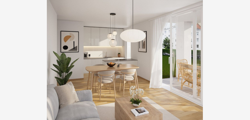 The Project The MOLLARD 50 project presents itself as a modern new development with three building sections including an underground garage. The architecture impresses with clean lines and thoughtful details, while the floor plans are designed with maximum flexibility and intelligent layouts. Spacious balconies, loggias, terraces, and garden areas extend the living space of almost every apartment outdoors, creating a special quality of life. The location in the heart of the 6th district combines urban infrastructure with high residential quality