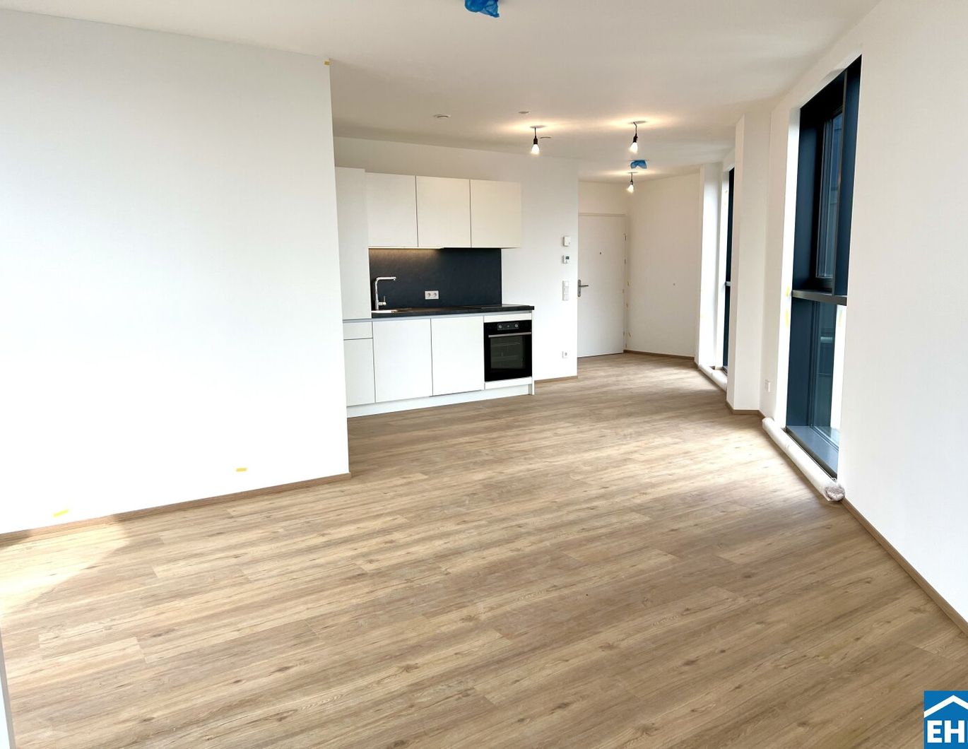 Jede Wohnung ist mit einer hochwertigen Einbauküche, Design-Vinylboden, Fußbodenheizung und einer Loggia ausgestattet.