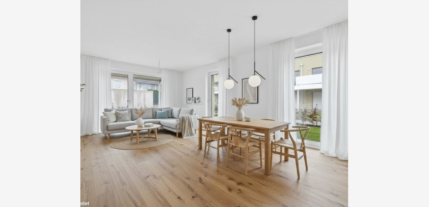 Diese ideal geschnittene 4-Zimmer-Wohnung mit zwei Bädern ist im Erdgeschoss gelegen und bietet eine Wohnfläche von ca. 88,5 m² sowie eine Terrasse mit ca. 11,68 m² und einen Garten mit ca. 133,93 m². Dieser ist aus allen Räumen direkt begehbar und lässt einen rund um das ganze Jahr herrlich entspannt leben