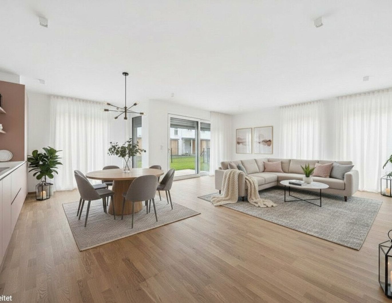 Offene Wohnküche mit Kochnische (ca. 40 m²) mit Zugang zur Loggia sowie zum Garten