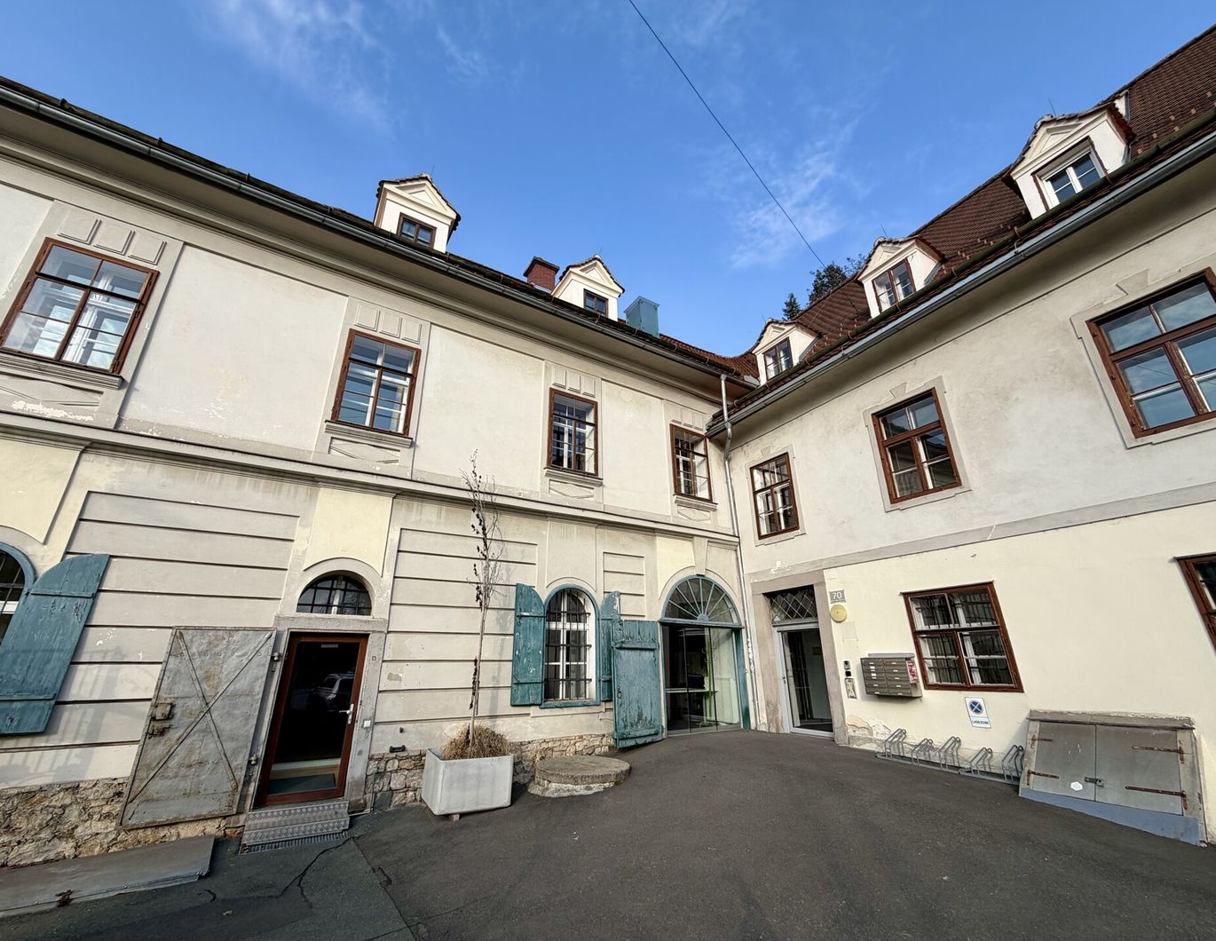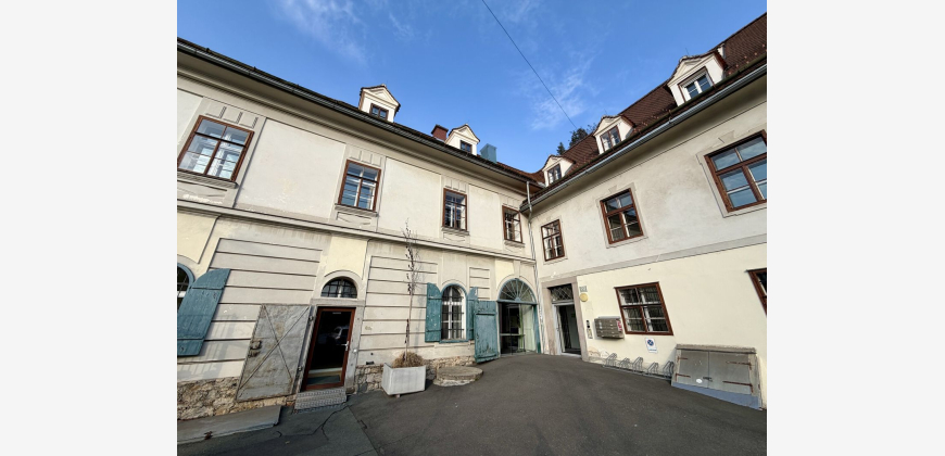 am Fuße des Schlossbergs und bietet eine außergewöhnliche Kombination aus zentraler Lage, großzügiger Flächenstruktur und historischem Ambiente. Die Büroeinheit 4 befindet sich im 1. Stock und hat eine Fläche von ca. 254 m².