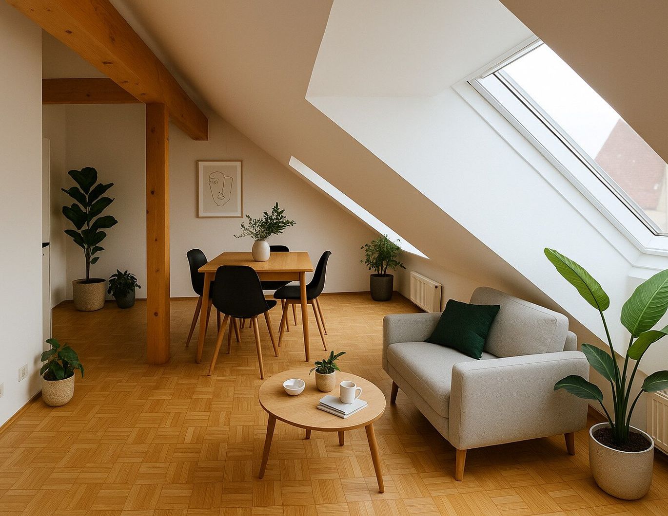 Die Wohnung befindet sich in Dachgeschoss eines gepflegten Gebäudes und ist bequem über den Personenaufzug zu erreichen. Das Objekt hat eine