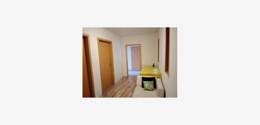 Sie besteht aus zentrales Vorzimmer, einem zentralen Wohnzimmer, 5 separaten Schlafzimmern, einer Küche mit Essbereich, einem Badezimmer mit Badewanne, einem WC und einem Abstellraum.