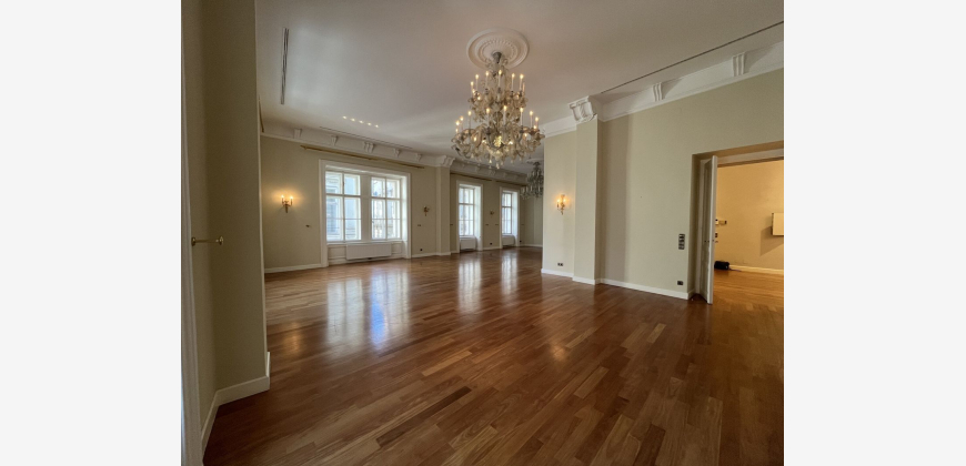 In perfekter Innenstadtlage befindet sich diese außergewöhnliche Wohnung in der Beletage eines repräsentativen Jahrhundertwendehauses. Die Wohnung zählt nahezu 350 m². Die Wohnresidenz teilt sich wie folgt: großzügiges Entrée mit Gästetoilette mit Handwaschbecken, beeindruckend großer Wohnsalon (Eckzimmer) mit Blick über die Bankgasse, Bibliothek oder Schlafzimmer, separate Küche