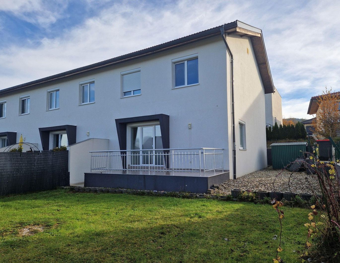 Dieses sehr gut durchdachte Reihenendhaus bietet seinen neuen Mietern einiges an Wohnkomfort und Platz. Das Erdgeschoß ist offen gestaltet und dadurch sehr hell. Vom Wohnzimmer aus gelangt man auf die ca. 14 m2 große Terrasse und weiter in den kleinen Eigengarten. Es befinden sich auch 2 Blechhütten für mehr Stauraum auf dem Grundstück. Im ersten Stock befinden sich die drei Schlafzimmer sowie ein Bad mit Wanne und WC. Perfekt abgerundet wird dieses Angebot durch die zwei Carport-Stellplätze.