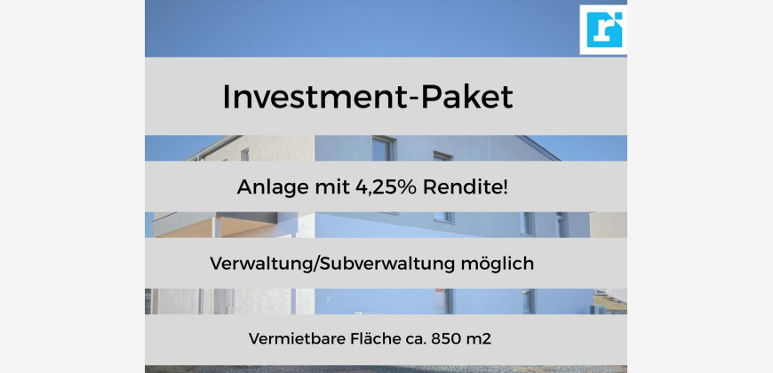 - nachhaltige Vermietbarkeit In der aufstrebenden Region rund um Oberwart wird ein exklusives Immobilienpaket zum Kauf angeboten, das sich durch eine erstklassige Bauqualität, eine attraktive Mindestrendite von 4,25 % sowie eine hervorragende Vermietbarkeit auszeichnet. Daten & Fakten zum Angebot: -Gesamtnutzfläche: ca. 848 m² vermietbare Wohnfläche -Einheiten: 6 hochwertige Wohneinheiten -Mindestrendite: 4,25 % (auf Basis realistischer Marktmiete) -Bauqualität auf Top-Niveau: -Holz-Alu-Fenster mit Sonnenschutz -ökologische Dämmung -Raumhöhen über 260 cm -edler Eichenparkett -großformatige Fliesen in moderner Optik -Erstvermietungsgarantie möglich