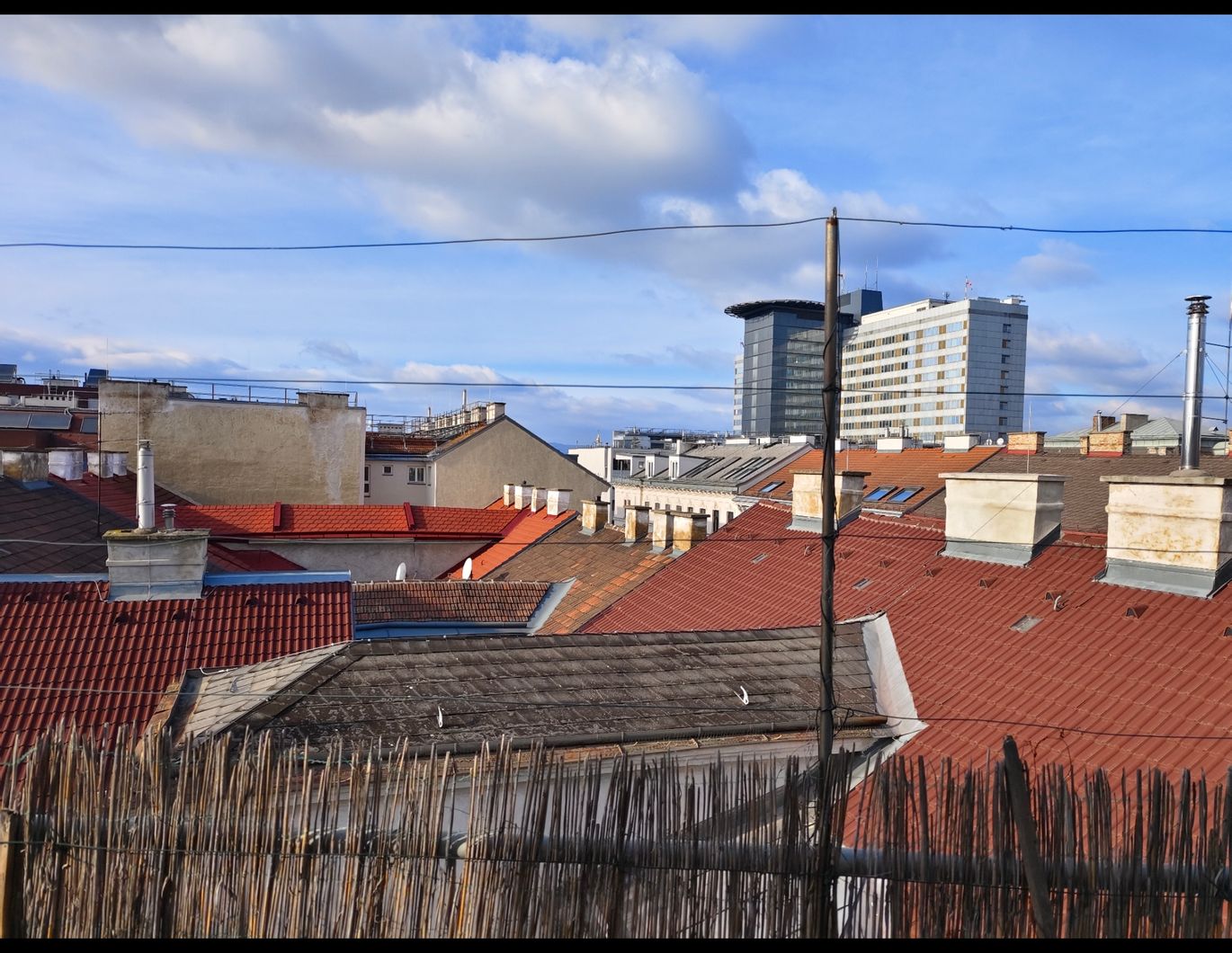 Dachgeschosswohnung mit 2 Terrassen (Südost und Nordwest) mit Blick über die Dächer Wiens ab sofort zu vermieten. Bitte keine Zuschriften ohne kurze Bewerbung, siehe abschließende Ausführungen ganz unten! Bitte beachten Sie auch, dass dieses Inserat viele nähere Details zur salomonischen Vertragsgestaltung entsprechend der Bedürfnisse und auch zur Absicherung der Mieter:innen enthält! Die sonnige 3 Zimmer-Dachgeschosswohnung wurde vor circa 10 Jahren renoviert und ist in gut bewohnbarem Zustand. Der bisherige Mieter zog schweren Herzens aus beruflichen Gründen aus. Das Objekt verfügt über ein circa 20 m2 großes Wohnzimmer, ein ungefähr 11m2 großes (Kinder-)Zimmer sowie ein in etwa ebenso großes Schlafzimmer (mit dezenter Dachschräge und Dachfenster) samt kleinem Abstellraum, kleiner Küche, Badezimmer, Vorzimmer und WC. Es eignet sich hervorragend für einen Ein- bis maximal Drei-Personen-Haushalt (2 Erwachsene, 1 Kind, an größere Familien kann die Wohnung insbesonders mit Rücksicht auf das Kindeswohl mangels größerem Bad sowie der erforderlichen Rückzugsmöglichkeiten grundsätzlich nicht vergeben werden.) Besonders zu erwähnen sind die beiden Balkone mit Südost- respektive Nordwest-Ausrichtung, die vom 7. Stockwerk aus einen großartigen Weitblick über die Dächer Wiens ermöglichen. Auf der "Sonnenaufgangsterrasse" wurde hochwertiges Lärchenholz verlegt, die "Sonnenuntergangsterrasse" zieren Steinfliesen. Auch die ruhige