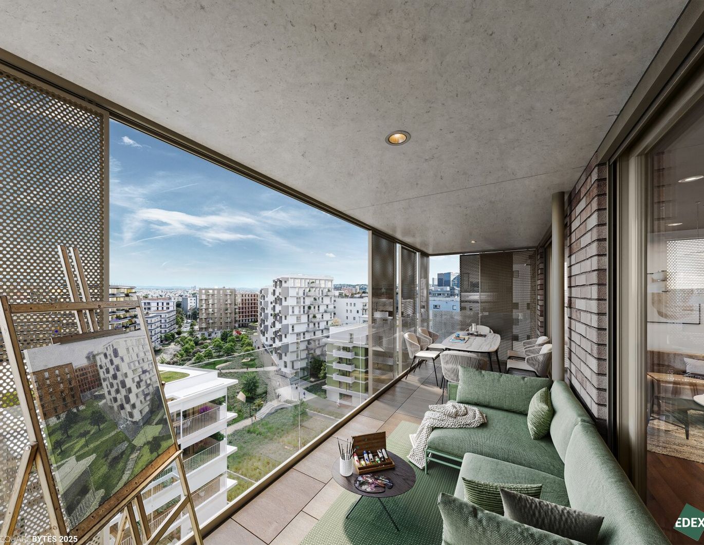 Balkone als Freiraumzimmer mit verschiebbaren Lochblech-Elementen