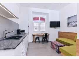 Das Mikro-Apartment ist vollmöbliert und mit Smart-TV, Klimaanlage, Nespresso-Kaffeemaschine, Teekocher, Geschirr, Bettwäsche und Handtücher ausgestattet. Die Küche bietet Kühlschrank mit Gefrier...